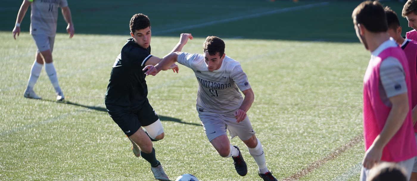 The game is played on a rectangular field with a goal at each end